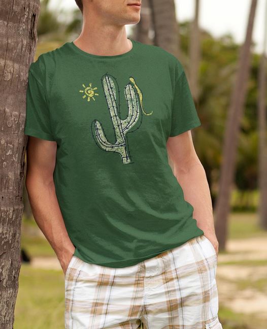 ΠΡΑΣΙΝΟ ΣΚΟΥΡΟ t-shirt FRUIT OF THE LOOM με στάμπα CACTUS