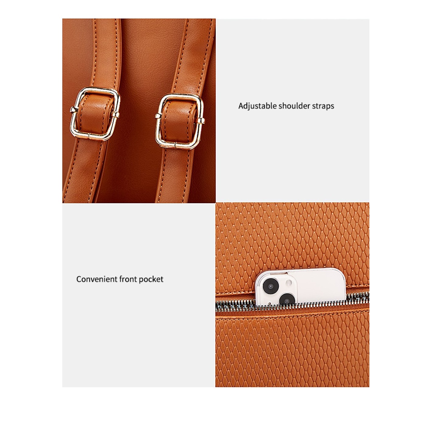 Το γυναικείο σετ 3 τεμαχίων περιλαμβάνει ένα σακίδιο πλάτης, τσάντα χιαστί μεσαίου μήκους και μια τσάντα χειρός . Οι τσάντες είναι κατασκευασμένες από eco leather υψηλής ποιότητας και αντοχής. Εξαιρετικά ανθεκτικές στις γρατζουνιές και ανθεκτικές στα σχισίματα.