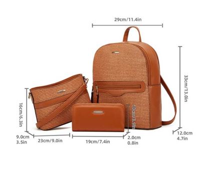 Το γυναικείο σετ τσαντών 3 τεμαχίων περιλαμβάνει σακίδιο πλάτης, τσάντα χειρός και πορτοφόλι σε κομψές μπεζ-μαύρο αποχρώσεις. Κατασκευασμένο από vegan leather και ανθεκτικό ύφασμα, προσφέρει πρακτικότητα, αντοχή και στυλ για κάθε περίσταση.