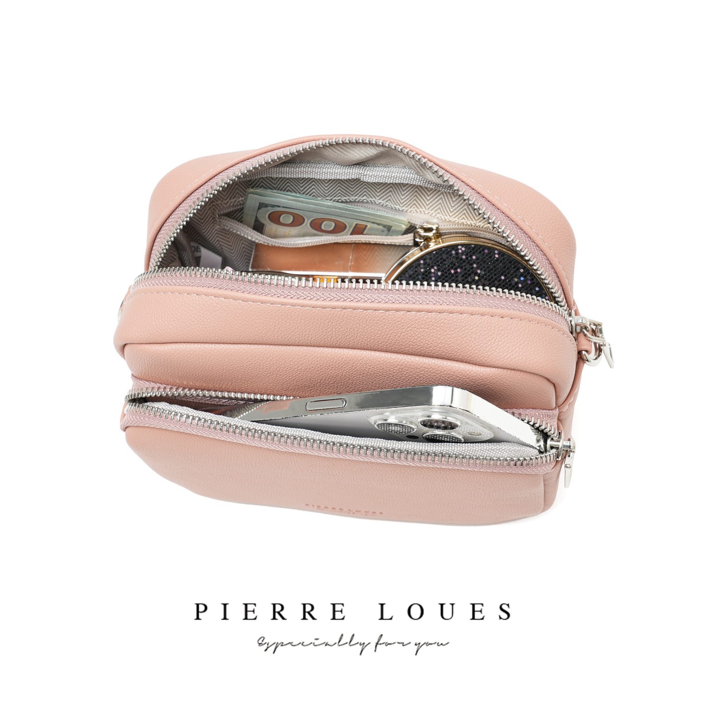 Η γυναικεία τσάντα ώμου Pierre Loues για γυναίκες διαθέτει 2 κύριες θήκες με φερμουάρ για να προστατεύεται τα προσωπικά σας αντικείμενα , 1 εσωτερική ανοιχτή τσέπη καθώς και μια εσωτερική με φερμουάρ για να καλύψει τις καθημερινές σας ανάγκες Το μοντέρνο σχέδιο της κάνει την τσάντα κομψή και όμορφη.
